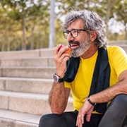 The reason we recommend filling your plate with fresh fruits, seasonal vegetables, and other nutrient-dense foods is that they help keep your teeth and gums healthy from the inside out. Conversely, hard pretzels, peanut brittle, and lollipops have basically zero nutritional value and increase the risk of your restoration breaking. Simply put, do your best to eat a well-balanced diet filled with foods that will benefit your smile instead of harm it.